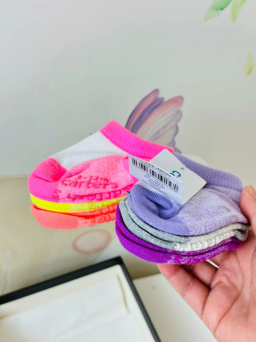 Este conjunto de meias da Carter's é perfeito para adicionar cor e conforto aos looks diários das pequenas. Com um mix de cores vibrantes como rosa, roxo, amarelo e lilás, essas meias proporcionam praticidade e estilo. Feitas em material macio e elástico, garantem o ajuste perfeito para os pezinhos, ideal para o dia a dia, mantendo os pés aquecidos e confortáveis.