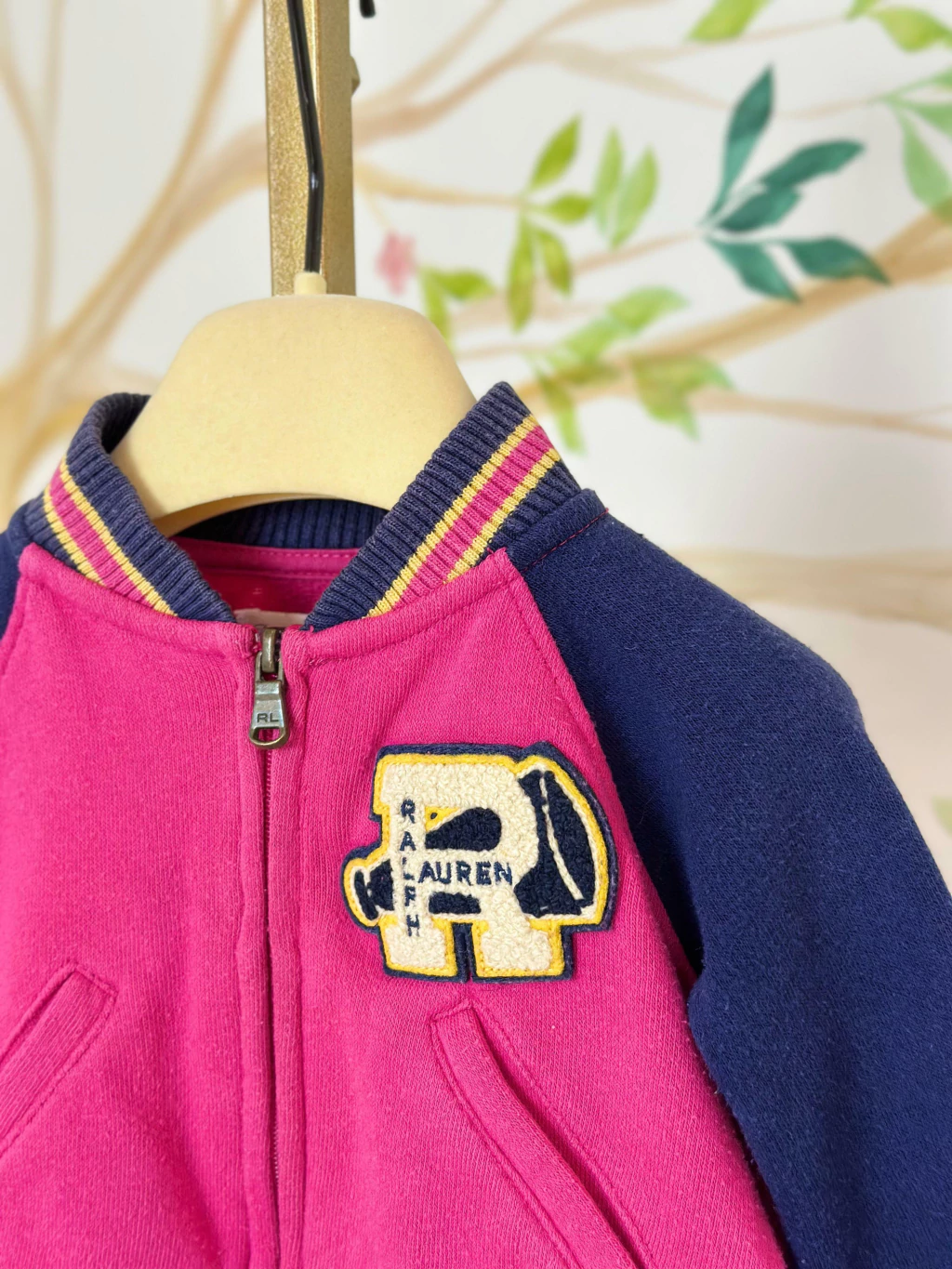 Esta jaqueta infantil da Ralph Lauren combina estilo e conforto para o dia a dia. Com um design moderno em rosa vibrante e azul marinho, ela traz detalhes sofisticados, como o babado na parte inferior e o logotipo clássico da marca bordado. A jaqueta possui fechamento frontal em zíper e bolsos laterais, proporcionando praticidade. As mangas raglan e a gola com acabamento em ribana listrada garantem um ajuste confortável e elegante.